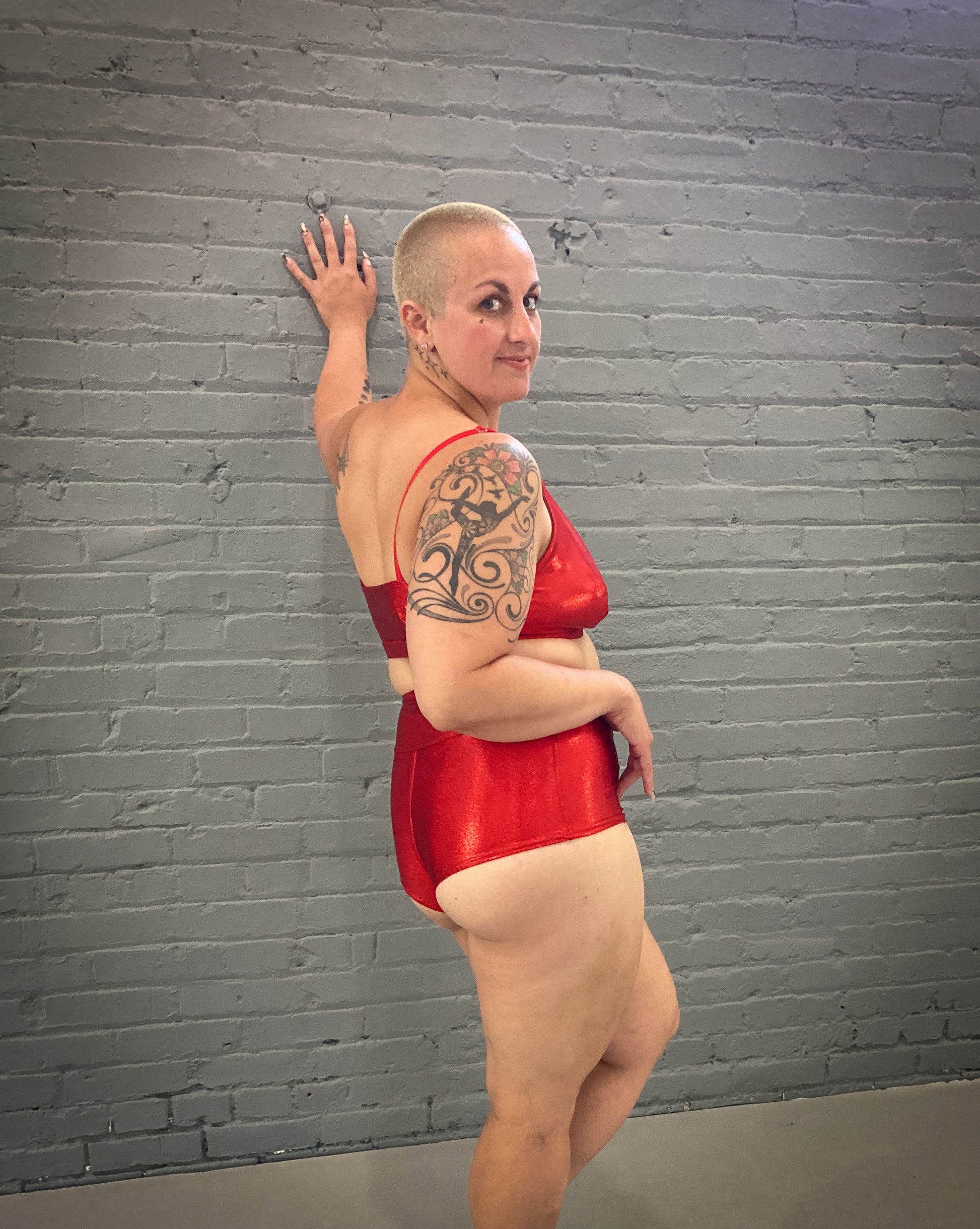The cheeky bottom provides full coverage in front and a cheeky cut back for that little extra bit of sass. Holographic foil adds a dynamic glitter effect when the luminous face catches the light at any angle. With a high waist and wide crotch, these shorts allow a full range of movement without any unwanted exposure. These shorts are designed without a center front seam for a smooth crotch. A combination of foil and glitter sparkle that become fully illuminated under a spotlight make this unique fabric sparkle on stage.